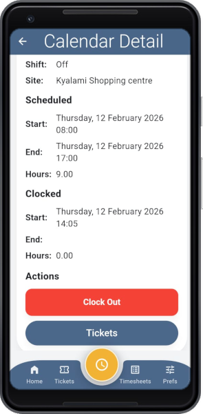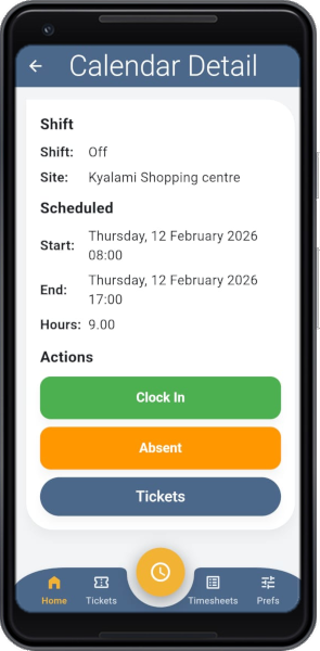 Users can clock whilst offline, and the application will automatically synchronize when back online.