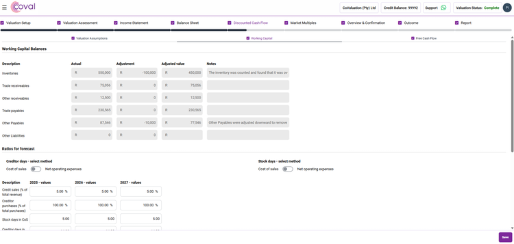 Perform robust valuations using both the Discounted Cash Flow (DCF) and Market Multiples approaches, allowing for flexible application depending on the nature of the business or purpose of valuation.